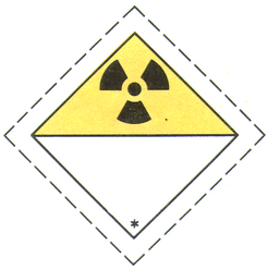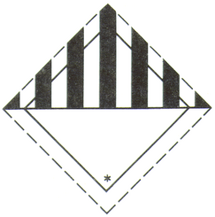 условный номер по "Перечню опасных грузов класса 1" в равностороннем треугольнике. Размер сторон треугольника в зависимости от габарита грузового места может быть 50, 80 или 150 мм;