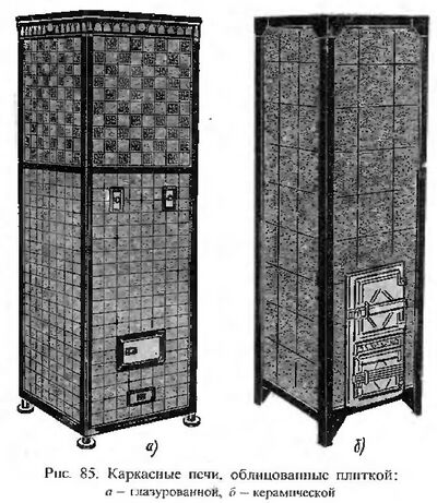 Каркасные печи – печи, состоящие из стального каркаса и внутренней кирпичной кладки. Наружные поверхности каркасных печей окрашивают или облицовывают (см. рис. 1, 2).