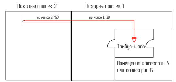 Рис. 1 Транзитные воздуховоды систем, обслуживающих тамбур-шлюзы при помещениях категорий А и Б