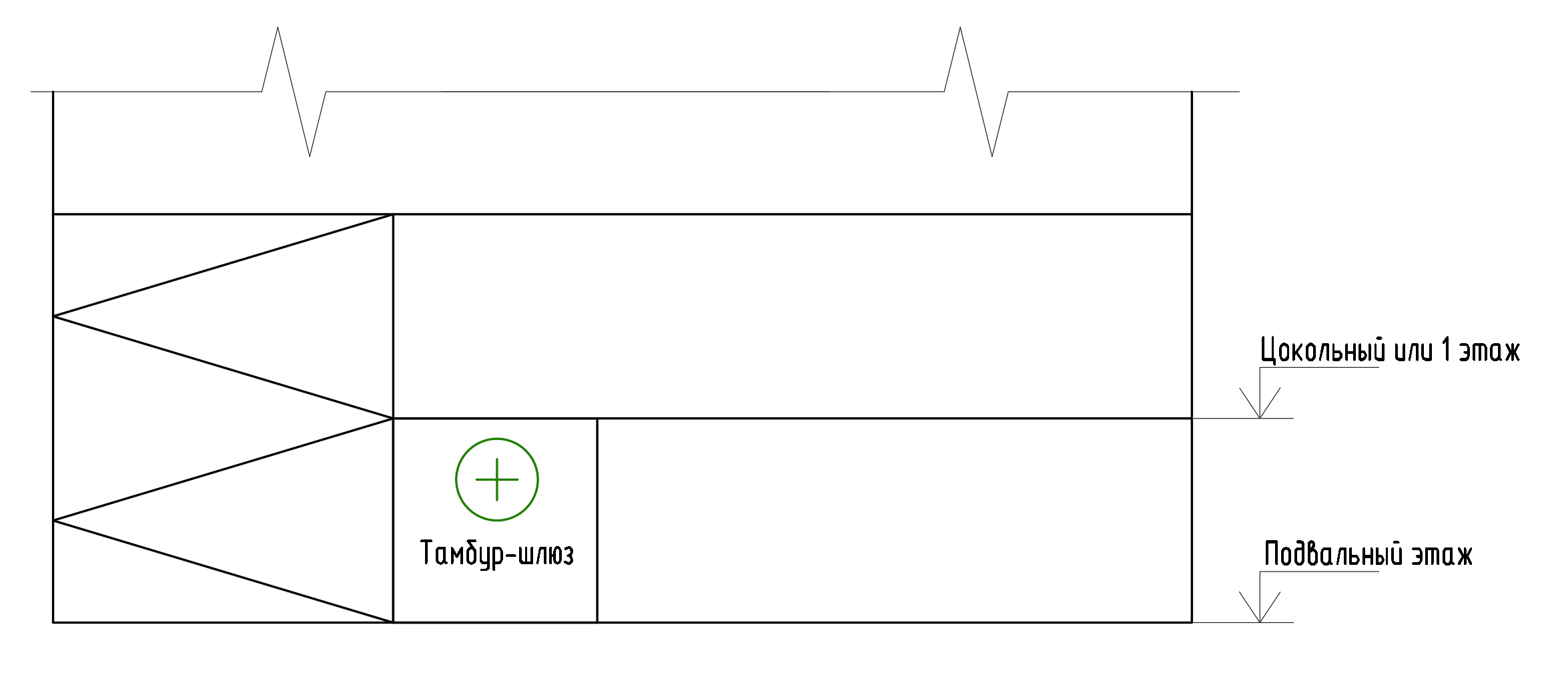 Подпор в тамбур-шлюзы при внутренних технологических лестницах, предназначенных для сообщения между подвальным этажом и цокольным или первым этажом