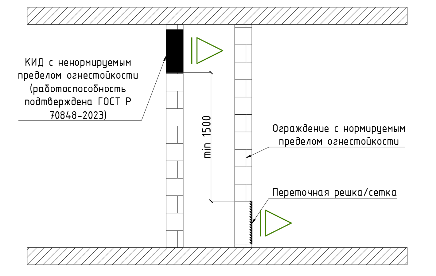 Рис. 2 Сброс воздуха через КИД с НЕнормируемым пределом огнестойкости. Вариант 1