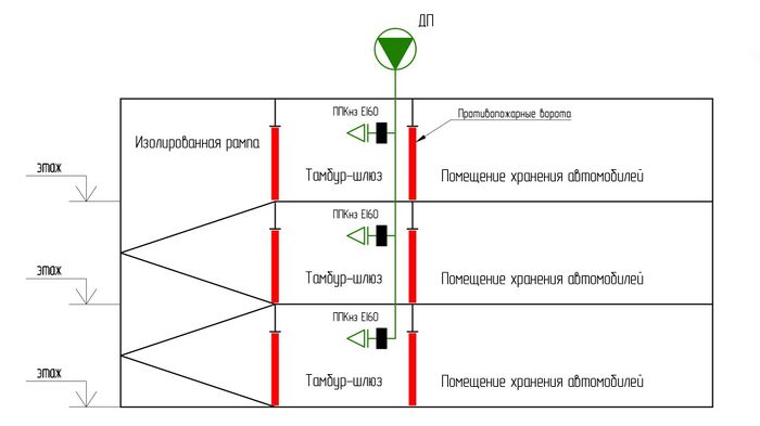 Рис. 16 Рампа отделена от помещений хранения автомобилей тамбур-шлюзами